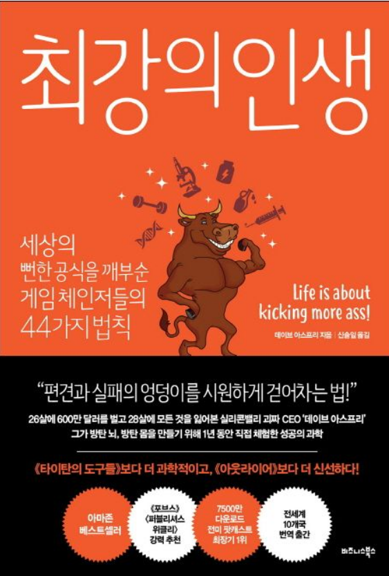 우리는 누구나 꿈을 가지고 있습니다. 그리고 대부분의 사람들은 자신의 꿈을 이루기 위해 노력합니다. 하지만 세상엔 너무나 많은 변수들이 존재하기 때문에 모든 일이 내 뜻대로 이루어지지는 않습니다. 그렇다면 어떻게 해야 할까요? 최강의 인생 저자 데이브 아스프리 역시 한때는 실패자였습니다. 고등학교 중퇴 후 마약 중독자가 되었고, 이후 감옥과 재활원을 들락거리며 밑바닥 인생을 살았습니다. 그러다 우연히 영양제 사업을 시작하면서 완전히 다른 삶을 살게 되었습니다. 지금은 억만장자가 되어 ‘최강의 인생’이라는 베스트셀러를 쓴 작가이자 실리콘밸리 최고의 투자자가 된 그는 “당신에게 한계란 없다”고 말합니다.